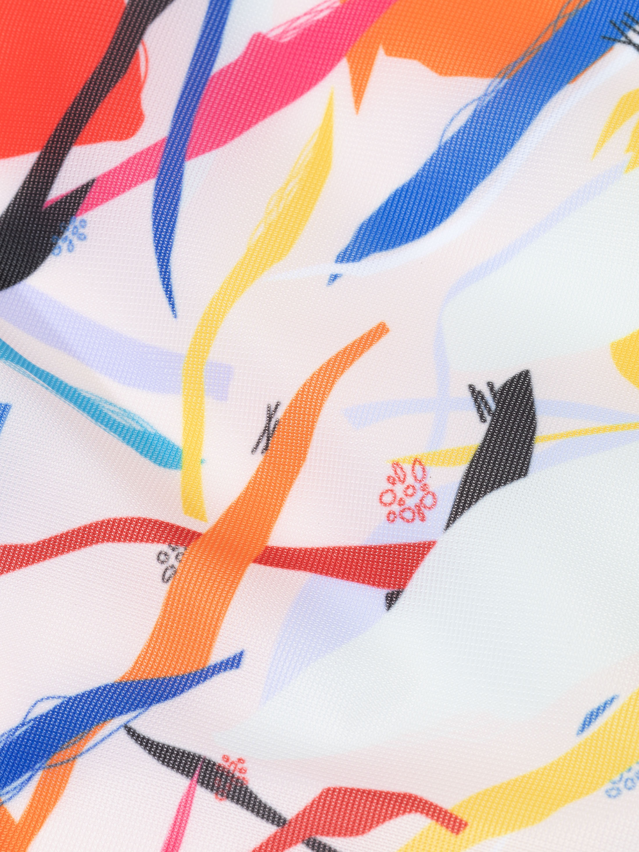 The base colour of fabric is a shining white, the finish texture being an all over sheen. The colour intensity is strong and shows all colours within the spectrum against the bright white of the base. Despite the netted, mesh-like surface quality of the material, the print is completely uncompromised and provides clean clear lines, also printing intricate details to a high level of accuracy.